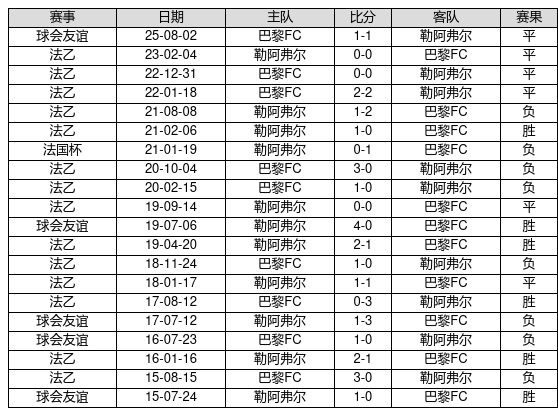 勒阿弗尔 VS 巴黎FC两队近10年的交战次数为20场,勒阿弗尔6胜6平8负,赢球概率为30.0%,平局概率为30.0%,输球概率为40.0%。