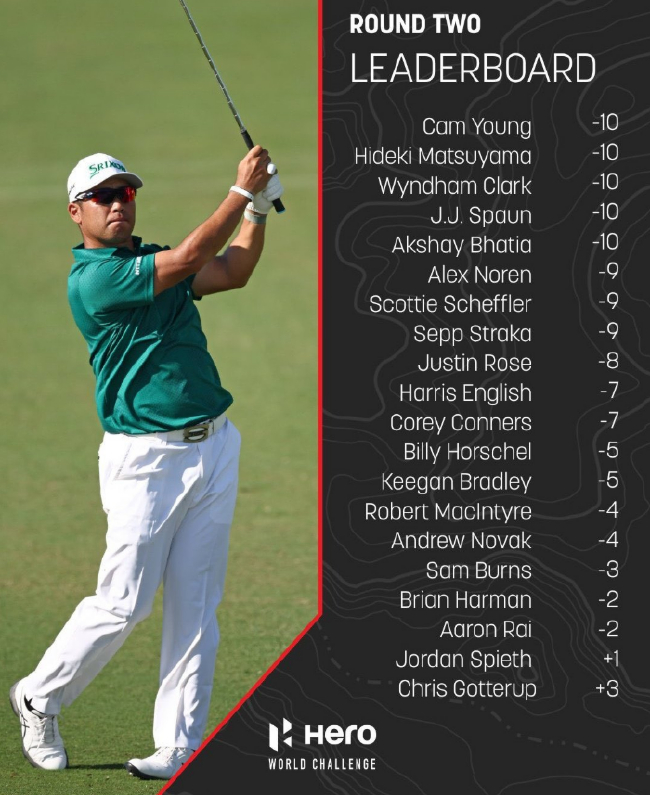 他们在奥尔巴尼高尔夫俱乐部的总成绩为134杆,低于标准杆10杆。进入周末时,20人的精英阵容中,有近一半选手在两杆范围之内。